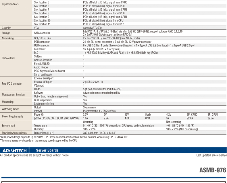 产品编号: 1 浏览次数:30次Tags:研华ASMB-976i;研华主板;服务器主板